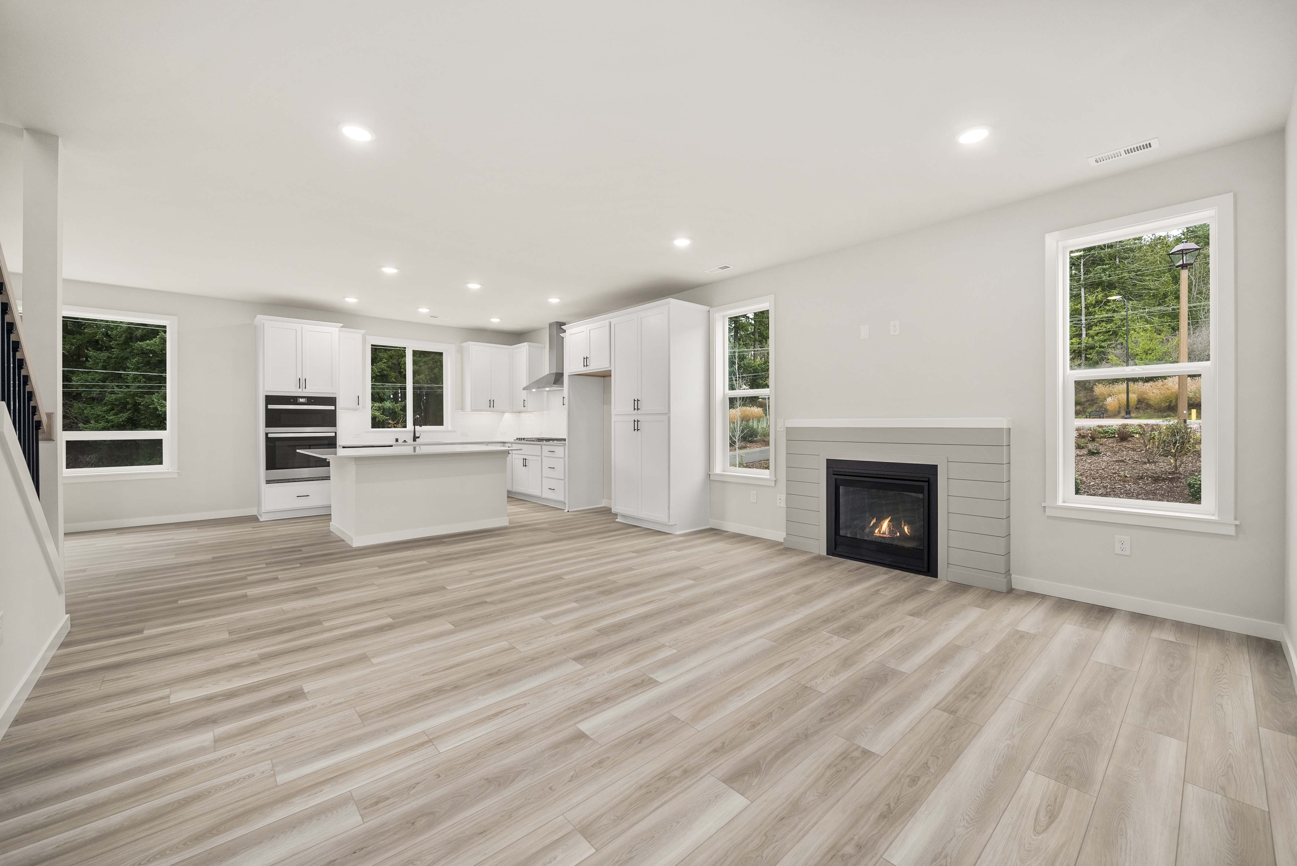 Showcasing thoughtfully designed two-story floor plans, these homes highlight modern features that blend comfort and innovation. Enjoy stylish quartz countertops in the kitchen and primary suite, premium stainless-steel appliances—including a electric cooktop with a 36” wall-mount range hood and smart Wi-Fi oven/microwave combo—plus 34.5-inch cabinets with molding, soft-close doors, pulls, and under-cabinet lighting.